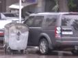 Зрештою бак зупинився у однієї з машин, заблокувавши двері водія. На запису можна побачити, як сміттєвий бак через вітер і мокру від дощу дорогу, сам по собі ковзає по проїжджій частині і б'ється об припарковані автомобілі. Зрештою бак зупинився у одні...